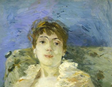For example, in Berthe Morisot’s painting Girl on a Divan c.1885 (of which only a portion is show here), we see a blue wall in back of where the subject is sitting. However, if the painting was entitled, Girl Lounging by the Ocean, the blue background might be interpreted as the blue backdrop of an ocean. Or, if the artwork was entitled, Girl Lounging in Front of a Bayside Window, then one could easily imagine a girl sitting with her back to a large window overlooking a peaceful bay.