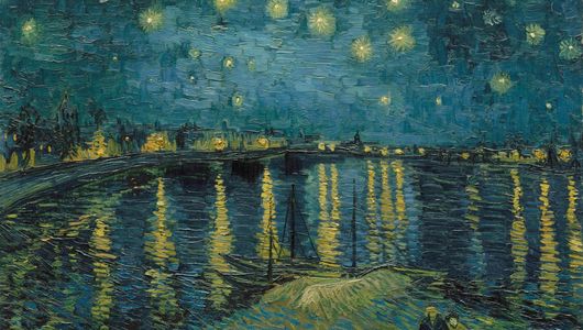 Combining both ideas mentioned above, namely, the importance of initially knowing the title of an impressionistic artwork to accurately understand the true meaning of an artist's painting, along with repetitive imagery used from one particular painting to another, can be exemplified by van Gogh's Starry Night Over the Rhône c. 1888.